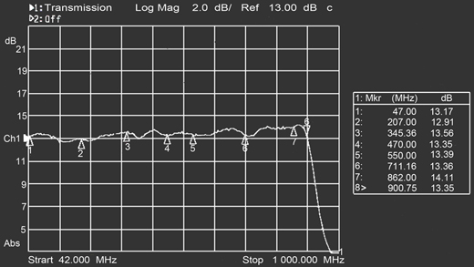 Within 47~862MHz bandwidth, all with excellent flatness feature (FL≤±0.75dB)
